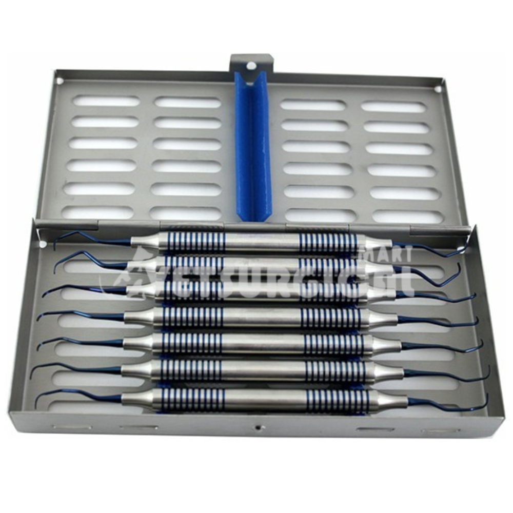Set of 7 Gracey Curettes covering complete periodontal and implant care needs.