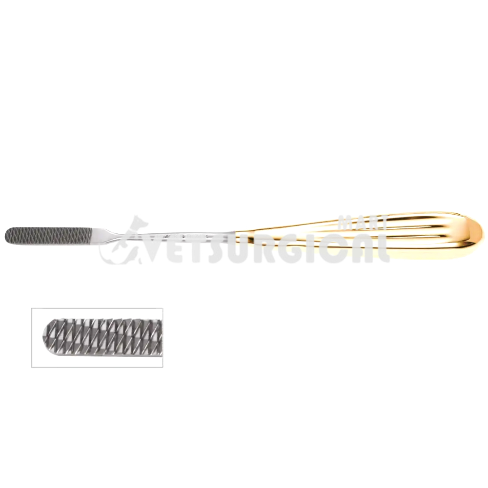 Parkes Nasal Rasp is a fine surgical instrument developed for precision nasal bone sculpting in rhinoplasty and reconstructive surgery. With its sharp, closely spaced serrations, it allows surgeons to file bone smoothly, achieving delicate contouring for both cosmetic and functional corrections. Its balanced design and ergonomic handle ensure excellent control, making it especially useful in final refinements of nasal shaping.