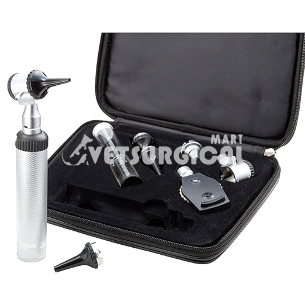 Standard Veterinary Otoscope  is a reliable diagnostic tool designed for veterinarians to examine the ear canal and tympanic membrane of animals with precision and comfort. Crafted from durable medical-grade materials, this otoscope features a traditional bulb-based light source that provides clear visibility during ear examinations. The ergonomic handle ensures a comfortable grip for extended use, making it suitable for general veterinary practices, routine check-ups, and initial diagnostic procedures. Its interchangeable specula accommodate different ear canal sizes, making it versatile for small and large animals alike. This instrument is essential for veterinary clinics seeking a cost-effective and practical solution for routine otologic assessments.