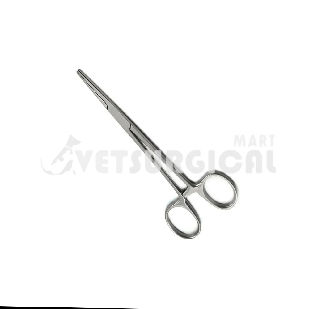 Straight Kelly Forceps are hemostatic clamps with straight jaws, ideal for procedures requiring direct, unobstructed access to blood vessels or tissues. Their design makes them particularly effective for superficial clamping, vessel occlusion, and handling sutures. The straight jaws, with serrations that stop halfway down, provide secure gripping power without excessive trauma to tissues. The ratchet mechanism ensures stable, hands-free vessel control throughout the operation. Straight Kelly Forceps are especially useful in general surgery, trauma cases, and when working in open surgical fields where direct access is available. They also double as utility instruments for holding surgical materials or assisting in tissue dissection.