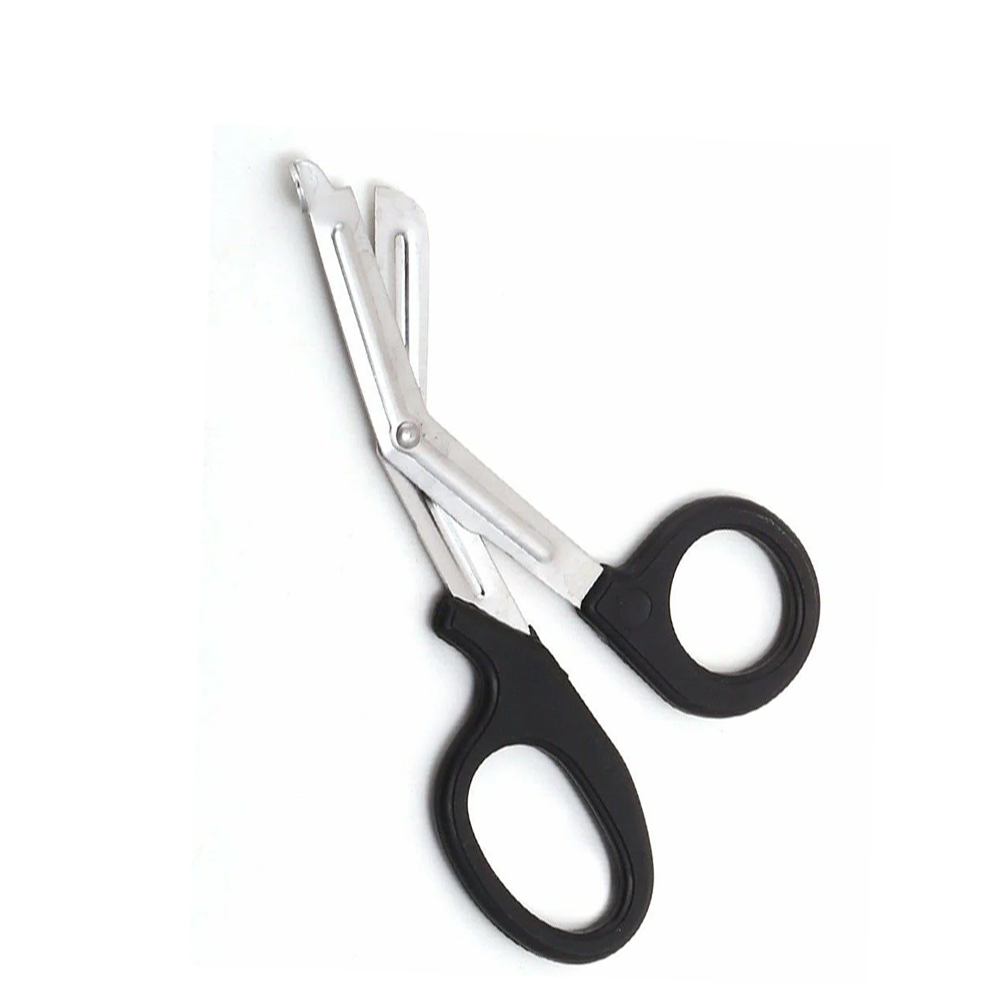 Trauma Shears are heavy-duty cutting instruments specifically designed for emergency and pre-hospital care. Built with reinforced blades, they are strong enough to cut through tough materials such as clothing, seat belts, leather, and even light metal, making them invaluable in life-saving situations. Their angled design also ensures safe use near the patient’s body.